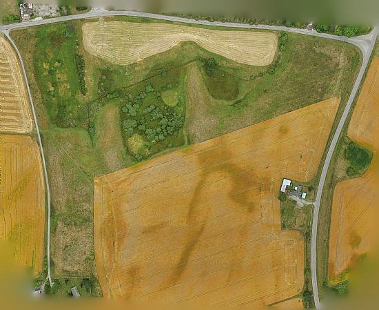The Gilchrist fort is a rather unusual monument and walking past it gives no clue to its existence, size or age. Canmore describes it as a promontory fort based on their interpretation of crop marks as the arcs of three concentric ditches “Apparently designed to cut off approach to a tongue of low-lying and comparatively level ground running NW into marshland, they are in effect part of the defensive system of a promontory fort measuring about 85 m by 30 m”. In addition to the black-and-white photographs on the Canmore database, the late Jim bone, who was an enthusiastic archaeologist and also a pilot, took some good colour photographs of the site. Jim’s aerial photograph shows three dark green curved features representing the fort’s ditches on the east side of the promontory. The ditches are now under cultivation and have been filled in and ploughed flat so there is nothing to see above ground; it is only the aerial photographs that have encouraged archaeologists to see this as a fortified promontory. It is unusual to find a promontory fort inland unless it is in a situation like this where it is surrounded by water or marshland. Most hill and promontory forts in Scotland appear to have been constructed during the late Bronze Age and Iron Age and the latest ones were built or reoccupied in Pictish times.